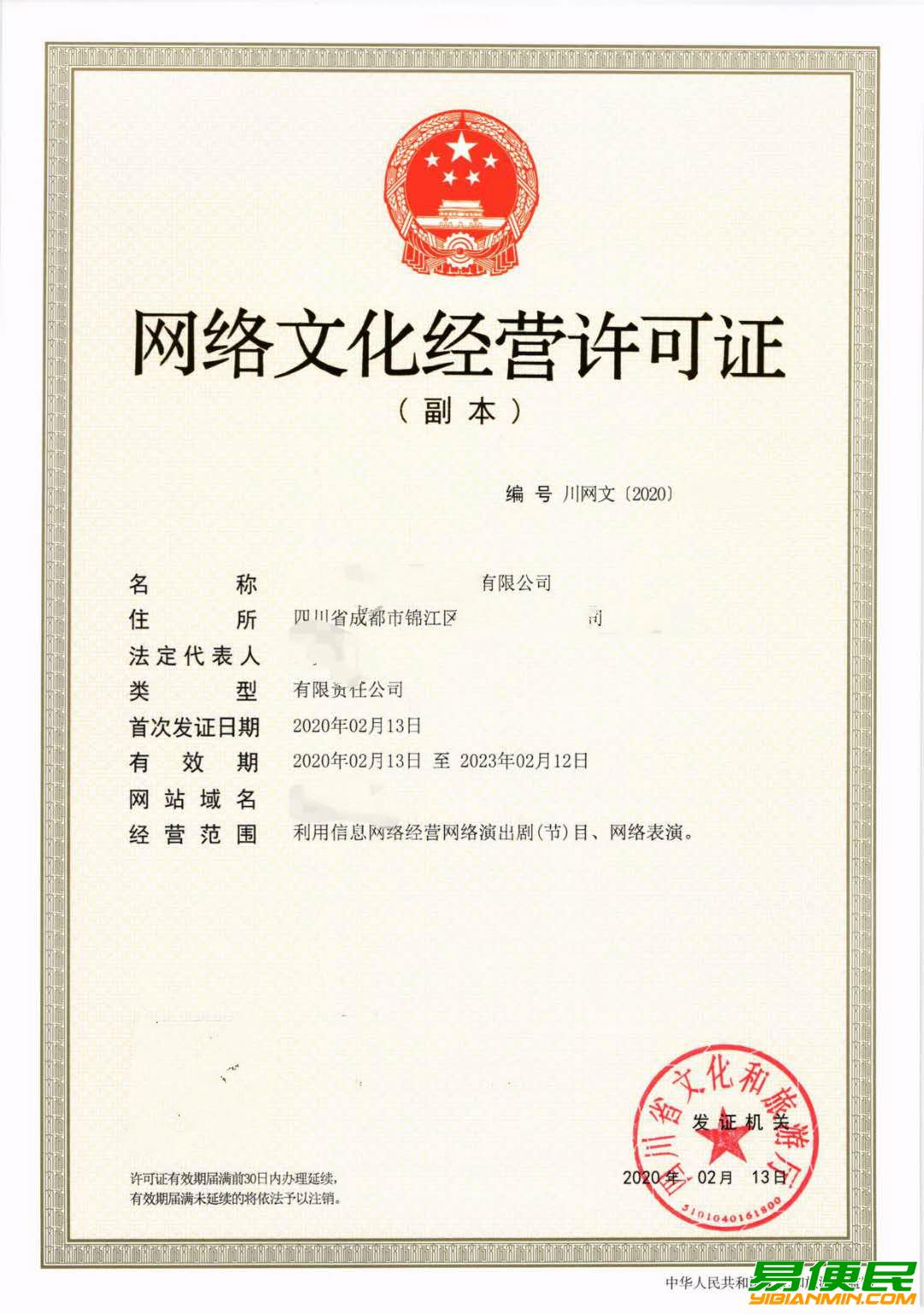 四川经营性互联网网络文化单位许可审批文网文许可证